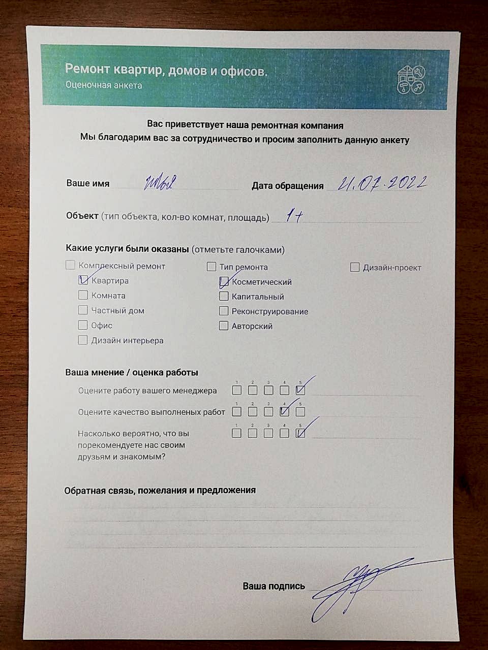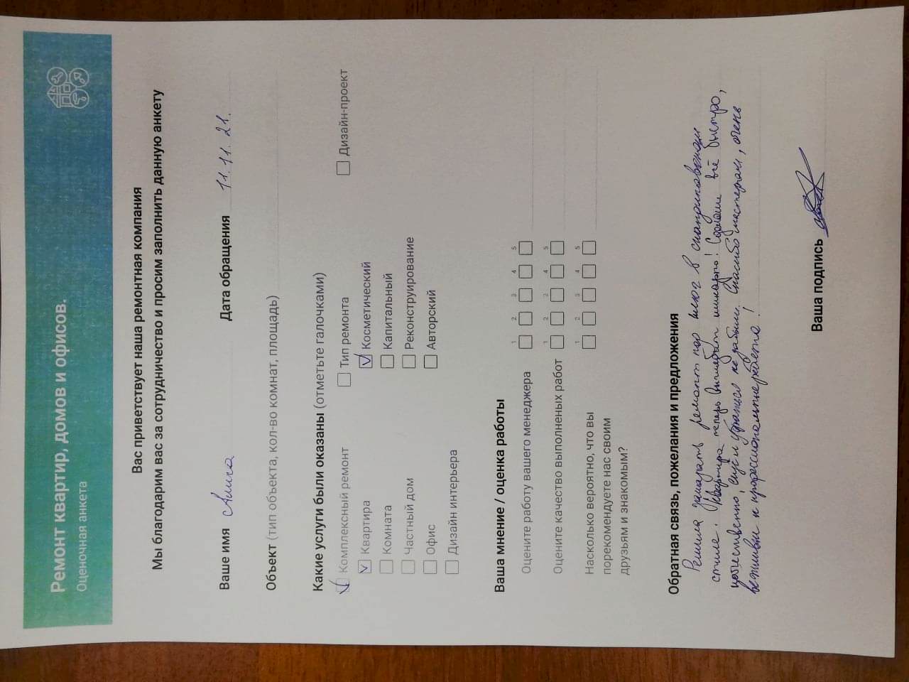 Организация заключает договор с заказчиком, в документе прописана стоимость строительных работ, скидка. Пинап стоит ремонт, все точно написано, а изменение цен - исключено. В договоре написано количество дней. Каждый этап работы выполняем качественно и быстро. После заключения договора приступим к выполнению заказа.